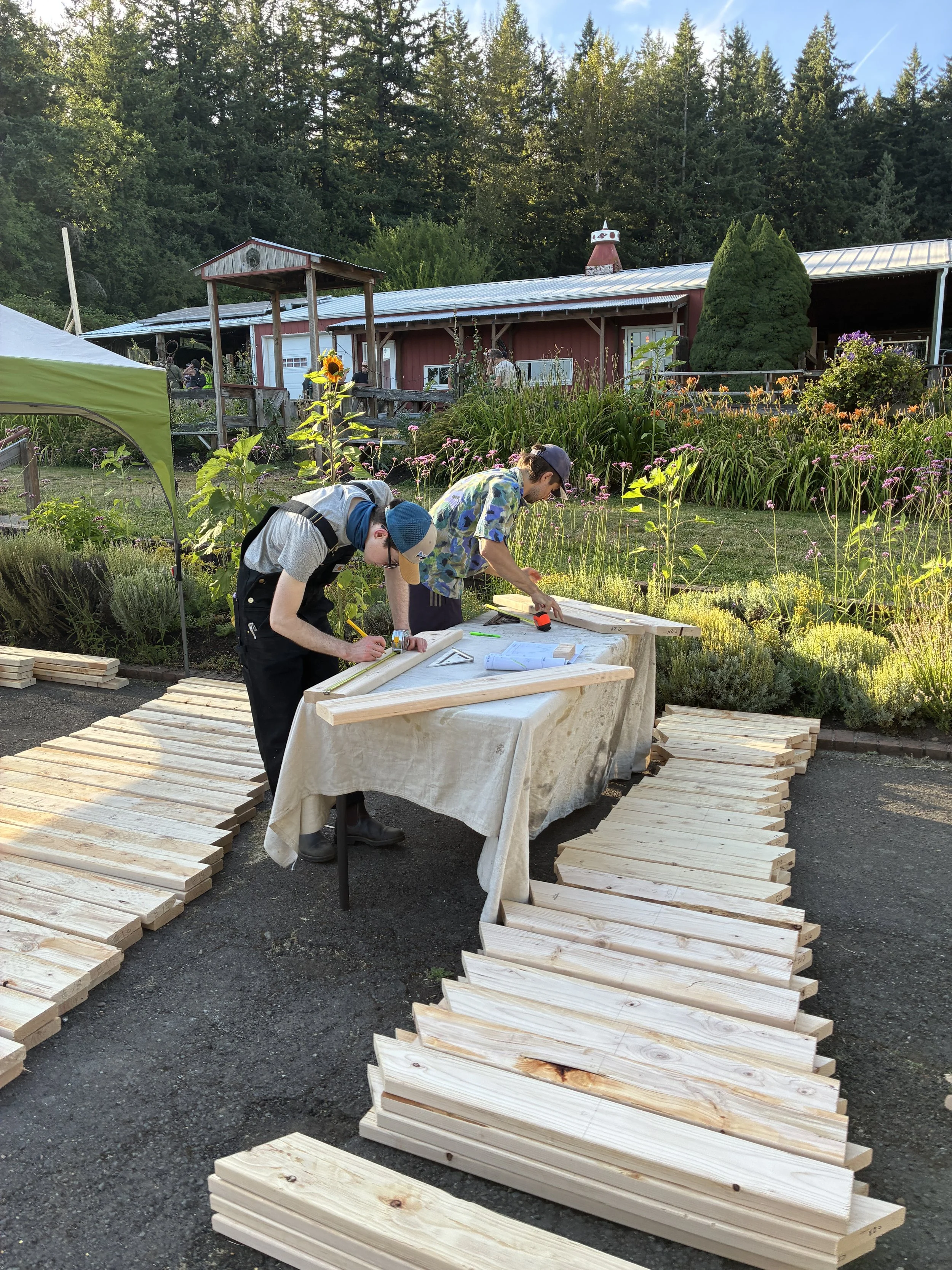 Our installations are 100% volunteer built, and no construction experience is required to sign up. We have a core crew of experienced carpenters, architects, and designers who love to share their trade. There is a seat at the table for you.